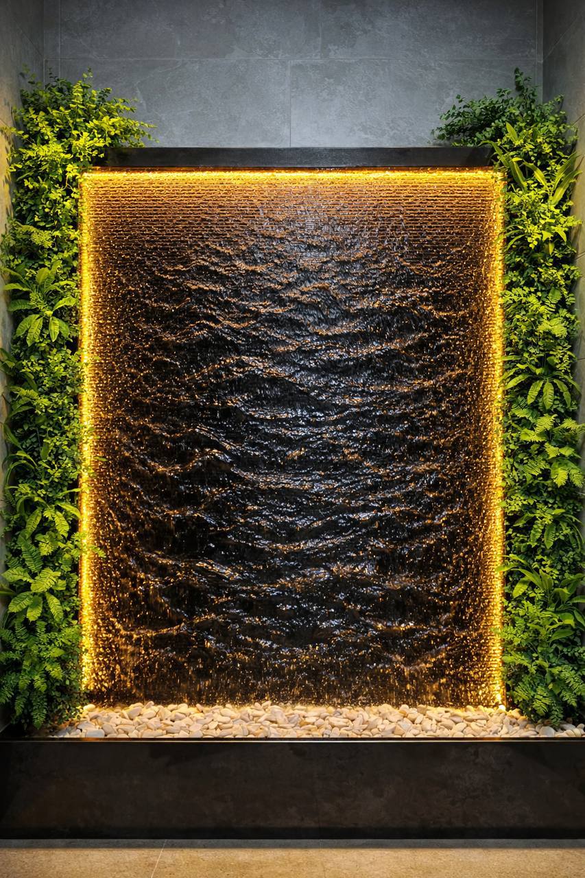 يُعتبر الشلال الانسيابي من أحدث وأجمل حلول الديكور المائي، حيث يمنح المكان هدوءاً بصرياً وصوتياً ويضفي لمسة فخامة واضحة تناسب التصاميم العصرية والراقية.