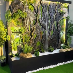 إضافة النباتات (سواء كانت طبيعية تعيش على الرطوبة أو صناعية بجودة عالية) على الجوانب يعطي إيحاءً بأنك في واحة طبيعية مصغرة.