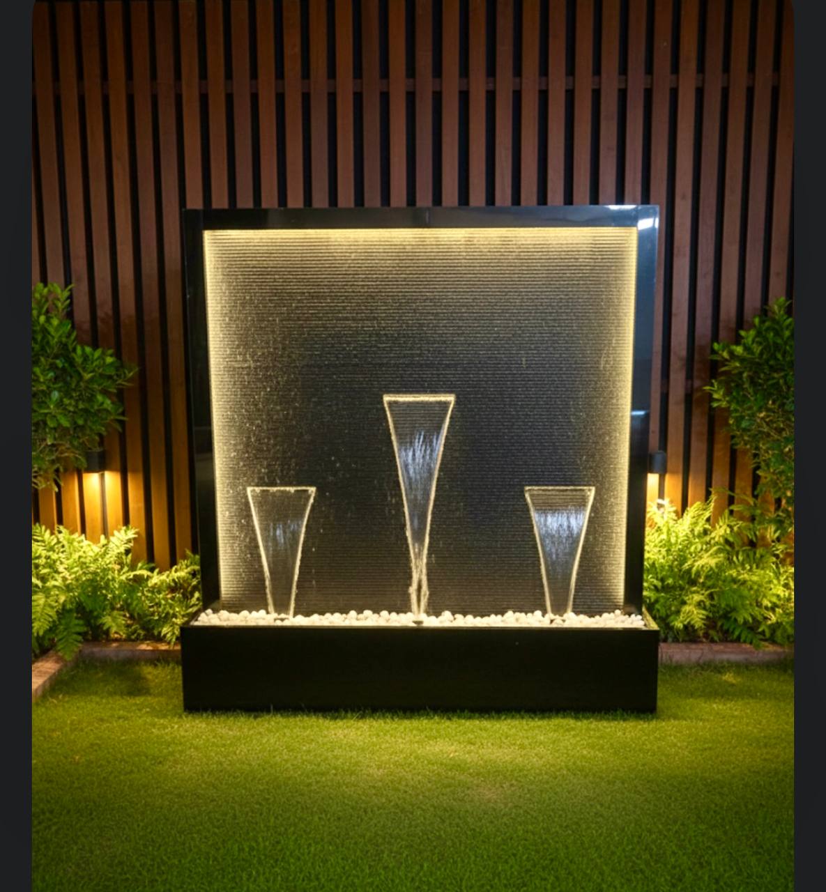 • الإطار الخارجي: يتميز الشلال بإطار أسود يعطي لمسة فخامة عصرية ويبرز لمعان وتموج الماء.