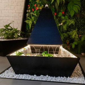 بوجود ثلاثة مصادر للمياه، توفر هذه النافورة صوت خرير ماء مسموع وهادئ، مما يساعد على عزل الضوضاء الخارجية وخلق جو من السكينة.