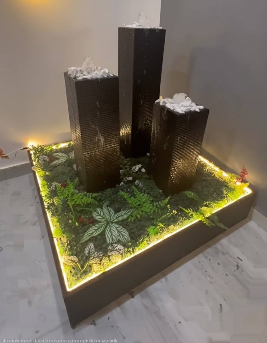 بفضل توزيع الأعمدة، تملأ هذه النافورة زوايا الغرف أو المداخل الكبيرة بفاعلية عالية، مما يجعلها قطعة ديكور مركزية بامتياز.
